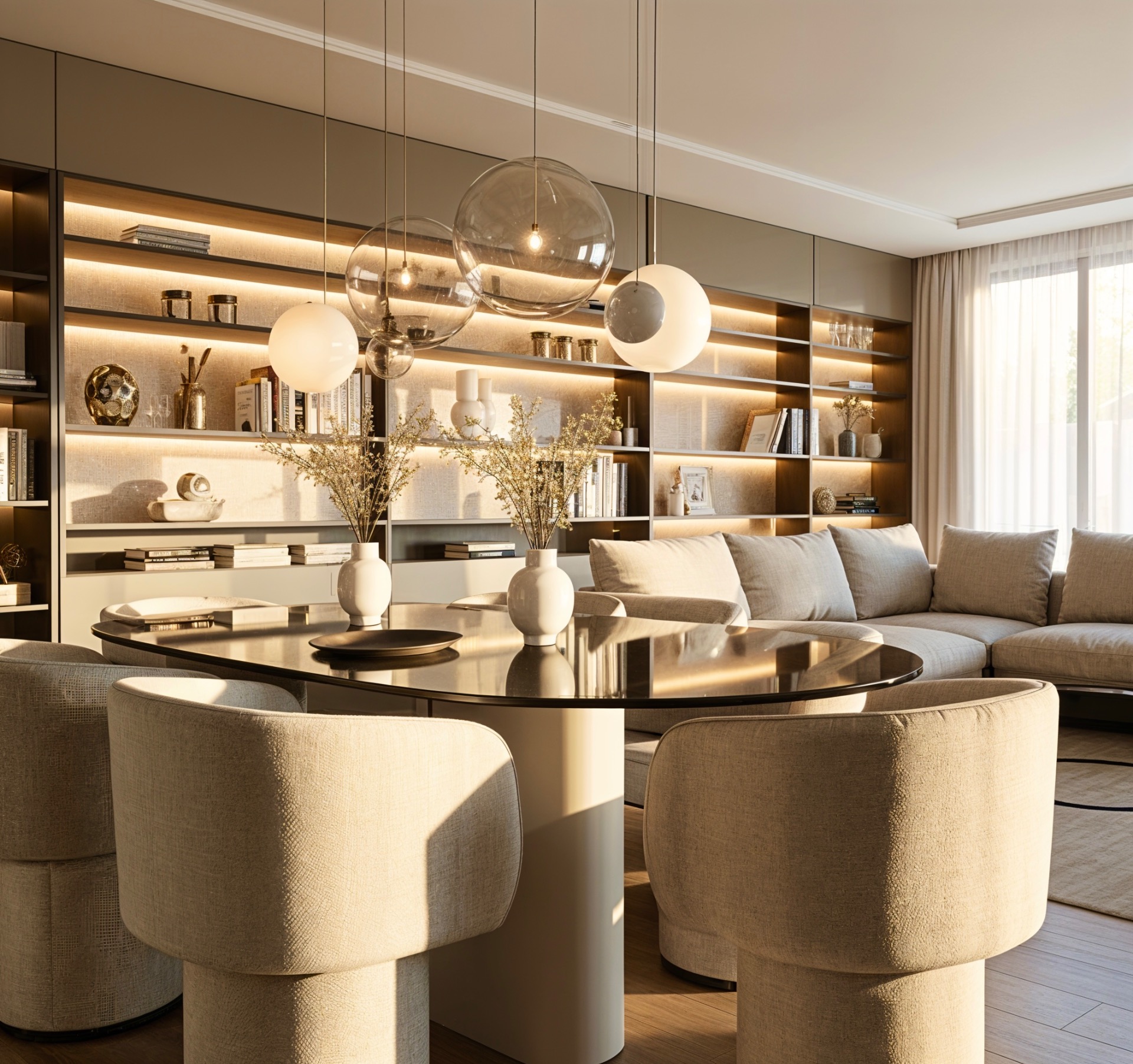Spoj elegancije, profinjenih linija i pomno odabranih materijala stvara interijere u kojima je luksuz nenametljiv, ali prisutan u svakom detalju – suptilan, trajan i prepoznatljiv. Svaki je prostor pažljivo osmišljen kako bi odražavao jedinstven stil, pružio potpunu udobnost i postigao savršenu harmoniju oblika, boja i tekstura.